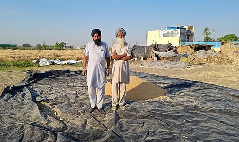 उनके पास खड़े थ्रैसर के मालिक 48 वर्षीय बिट्टू सिंह ने भी किसानों की पैदावार प्रभावित होने की बात कही। वह पिछले 12 सालों से किराए पर किसानों के गेहूं के दाने अपने थ्रैसर से निकालते हैं।