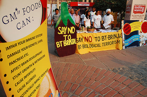 कोलकाता और अन्य जगहों पर वैज्ञानिकों और गैर सरकारी संगठनों के एक समूह ने 2013 में विरोध-प्रदर्शन किया। यह बांग्लादेश में अनुवांशिक संवर्धित बैगन की शुरुआत करने के विरोध में प्रदर्शन किया गया था क्योंकि इससे भारत में भी फसलें प्रभावित होंगी। 2014 में, पश्चिम बंगाल सरकार ने कहा कि उसे बांग्लादेश से बीटी बैंगन बीज के व्यावसायिक रूप से घुसपैठ के बारे में जानकारी मिली है। यह बीज व्यावसायिक रूप से बांग्लादेश में काफी उपयोग किया जा चुका था।