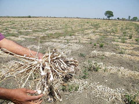 इस वर्ष थ्रिप्स नमक कीट ने लहसुन की फसल को बर्बाद करने का काम किया है। ये छोटे आकर के पीले रंग के कीट होते हैं जो लहसुन और अन्य फसलों, जैस कपास, मिर्च और प्याज को भी प्रभावित करते हैं।