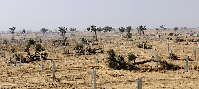 सोलर प्लांट के लिए 2024 में अपनी 100 बीघा जमीन बेचने वाले कालासर गांव के कालूराम कहते हैं कि उन्हें इसका इतना पछतावा है कि बस मरना बाकी रह गया है। वह बताते हैं कि उनके खेतों में 100 से अधिक खेजड़ी के पेड़ थे, जिन्हें पूरी तरह काट दिया गया गया है। धरती खेजड़ी से नंगी हो चुकी है।