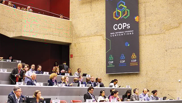 हर दो साल में भारत समेत करीब 200 देश स्टॉकहोम कन्वेंशन के कॉन्फ्रेंस ऑफ द पार्टीज (कॉप) में शिरकत करते हैं, जिसका उद्देश्य हानिकारक और दीर्घकालिक रसायनों को समाप्त या कम करना है। हालांकि हाल ही में 28 अप्रैल से 9 मई तक स्विट्जरलैंड के जिनेवा में हुई बैठक में पार्टियों ने यूवी-328 नामक औद्योगिक रसायन के उपयोग को एयरोस्पेस और रक्षा क्षेत्रों में अनुमति दे दी। वर्ष 2023 में पार्टियों ने इसे प्रतिबंधित करने का निर्णय लिया था, हालांकि मोटर परिवहन, यंत्र उपकरण, औद्योगिक मशीनें, चिकित्सा और फोटोग्राफी जैसे पांच क्षेत्रों में सीमित उपयोग की अनुमति दी गई थी।