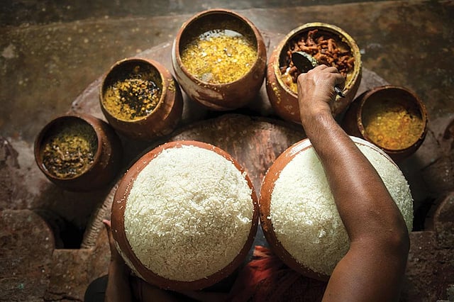 भगवान भी भोजन करते हैं। हमारी तरह उनके खाद्य पदार्थ भी पारिस्थितिक विविधता को प्रतिबिंबित करते हैं। भोजन और आस्था में संबंध है। यह न केवल देवताओं का प्रसाद है, बल्कि ऐसे खाद्य पदार्थ हैं जो अनुष्ठानों और समारोहों का हिस्सा हैं। यह भोजन लोक कथाओं से भी जुड़ा है। उदाहरण के लिए छप्पन भोग ओडिशा के मंदिरों में तैयार किए जाते हैं, जहां टमाटर, आलू या मिर्च का उपयोग नहीं किया जाता है क्योंकि ये विदेशों से आए हैं। लहसुन व प्याज को भी मांसाहार की श्रेणी में रखा गया है और इसे भोग से बाहर रखा गया है।