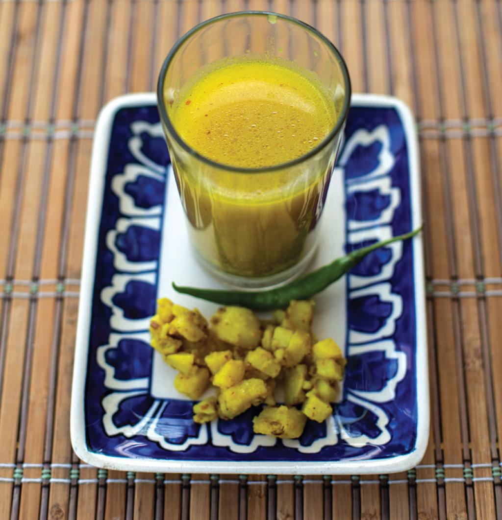 विधि: एक लोहे ही कड़ाही को गर्म कर उसमें घी, हींग और जीरा डालकर उसे चटकने तक पकाएं। इसमें छिले व मसलू हुए आलू को हल्दी, धनिया, मिर्च पाउडर, नमक के साथ अच्छे से मिलाकर डाल दें। अब अपने हिसाब से एक या दो कप पानी मिलाकर सब्जी तैयार कर लें। किण्वित पेयसामग्री