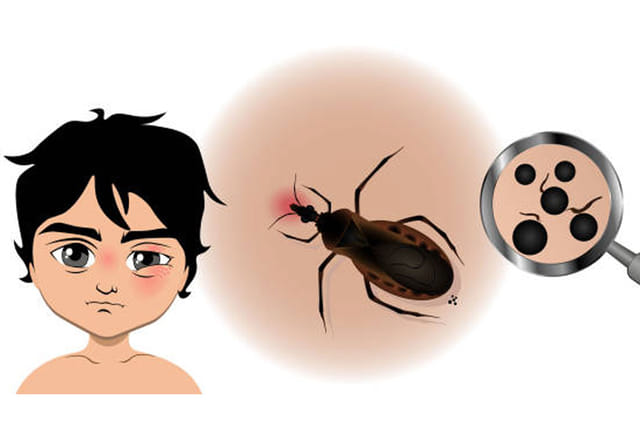 🐞यह बीमारी ट्राइपैनोसोमा क्रूजी परजीवी के कारण होती है, जो शरीर में घुसकर दिल और पाचन तंत्र को नुकसान पहुंचाता है।