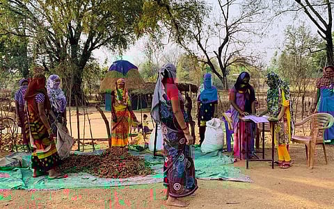 कोविद-19 और इसकी वजह से लगे लॉकडाउन ने शहर की अर्थव्यवस्था लगभग ठप कर दी है, लेकिन ग्रामीण महिलाओं ने गांव की अर्थव्यवस्था को रुकने नहीं दिया है। आमतौर पर वनोपज संग्रहण में महिलाओं की सक्रियता पुरुषों के मुकाबले अधिक होती है। हालांकि, कई गांवों में मजदूरी करने पलायन कर शहर गए पुरुष लॉकडाउन की वजह से वापस भी नहीं आ पाए, जिस वजह से संगहण की पूरी जिम्मेदारी महिलाओं के ऊपर है। कोविद-19 से बचाव के लिए वनोपज संग्रहण करने वाली महिलाएं सरकार के निर्देश के मुताबिक आपस में 3 मीटर की दूरी और मुंह पर कपड़ा बांधकर काम कर रही हैं।