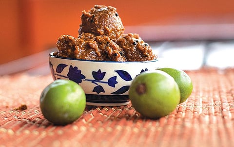 व्यंजनगोवा की आमड़ा चटनीआमड़ा: लगभग 6 नारियल (ताजा कद्दूकस किया हुआ): 3 बड़े चम्मच गुड़: 2 बड़े चम्मच चीनी: 1 बड़ा चम्मच लाल मिर्च (पूरी): 2 करी पत्ता : 2 हल्दी: 1 चम्मच नमक: ½ छोटी चम्मच तेल: 2 बड़े चम्मच सरसों के बीज: 1 छोटा चम्मच विधि : आमड़ा को धोकर छील लें। एक पैन में तेल डालें और गरम होने पर सरसों व करी पत्ता डालें। अब इसमें छिले फल और हल्दी डालें और एक-दो मिनट तक पकाएं। फिर एक कप पानी डालें व फलों को नरम होने तक उबालें। जब ये उबल रहे हों, नारियल, नमक और मिर्च का गाढ़ा पेस्ट बना लें। इस पेस्ट को उबलते हुए फलों में मिला लें। कुछ मिनट के लिए तब तक पकाएं जब तक कि मसाले फलों में समा न जाएं। अंत में गुड़ और चीनी डालें और कुछ देर और पकाएं। अब यह बनकर तैयार है। पुस्तक सात्विक कुकिंग: मॉडर्न अवतार्स ऑफ वेदिक फूड्स लेखक: हंसाजी जे योगेन्द्र प्रकाशक: रूपा पब्लिकेशंस इंडिया मूल्य: £R395 पृष्ठ: £332 इस पुस्तक में बताए गए व्यंजन आपको सात्विक भोजन के लाभ प्राप्त करने में मदद करेंगे। सात्विक खाना पकाने में प्राकृतिक मिठास सबसे महत्वपूर्ण हैं क्योंकि वे वात को उत्तेजित करते हैं और दो दोषों- पित्त और कफ को नियंत्रित करता है। |
