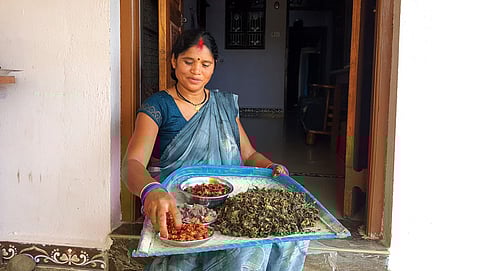पूना यादव का परिवार और उनका गांव पिछले तीन से चार साल से एक ऐसे बदलाव से गुजर रहा है जिसने उनके किचन का खर्च काफी कम कर दिया है। मंडला जिले के बरखेड़ा गांव में रहने वाली 42 वर्षीय पूना ने चेच भाजी, सुरन कांदा और छोटे टमाटर सुखाकर रख लिए हैं जो आने वाले कुछ महीनों में काम आएंगे। ये सब्जियां और भाजी उन्होंने मॉनसून सीजन में जंगल से एकत्र की हैं। बरखेड़ा की अधिकांश महिलाएं पूना की तरह नियमित रूप से जंगल से एकत्र सब्जियों और भाजियों को तुरंत पकाकर खाने के साथ ही सुखाकर भंडारित भी कर रही हैं।