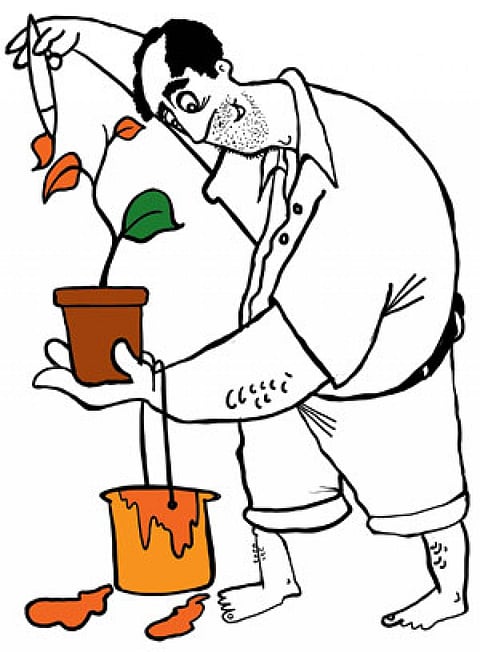 सारे बच्चे भाग खड़े हुए। उधर डीपी जल्दी से अपने घर गए और एक पेंट के डिब्बे और ब्रश को लेकर पार्क में लौटे। उन्होंने एक नन्हे से पौधे को उठाया और बड़े प्यार से उसकी नन्ही पत्तियों को रंगने लगे। डीपी गुनगुनाने लगे , “दुनिया भुला के तुमसे मिला हूं/निकली है दिल से ये दुआ रंग दे तू मोहे गेरुआ।”