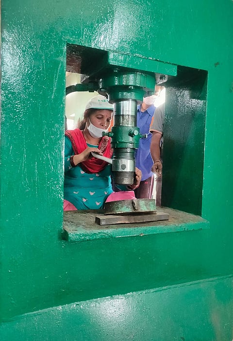 “लोहे को गर्म करके ढलाई के काम में हम गांव के पुरुषों की मदद लेते। लेकिन धीरे-धीरे हमने अपने डर पर काबू पाया। अब हम लोहे की घिसाई-पीटकर बर्तन बनाने, डिजाइनिंग जैसे काम खुद करते हैं।” वह आगे बताती हैं।