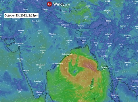 मौसम विभाग के नए बुलेटिन के अनुसार, 22 अक्टूबर, 2022 को दबाव बनना शुरू हुआ और 23 अक्टूबर की सुबह 5.30 बजे पूर्व-मध्य बंगाल की खाड़ी में यह दबाव तेज हो गया।