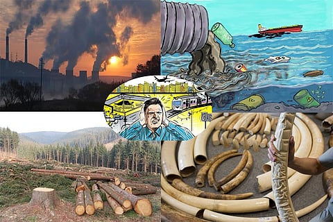 पर्यावरण से संबंधित अपराधों में वन अधिनियम, वन संरक्षण अधिनियम, वन्य जीवन (संरक्षण) अधिनियम, पर्यावरण (संरक्षण) अधिनियम, वायु और जल (प्रदूषण की रोकथाम और नियंत्रण) अधिनियम, सिगरेट और अन्य तंबाकू का उल्लंघन उत्पाद अधिनियम, ध्वनि प्रदूषण अधिनियम और नेशनल ग्रीन ट्रिब्यूनल (एनजीटी) अधिनियम शामिल हैं।