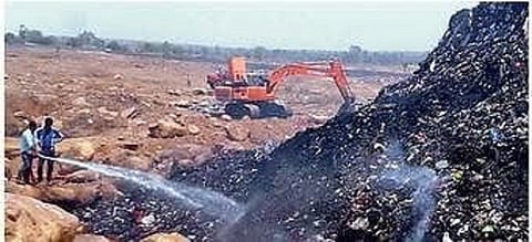 भोपाल से 18 किलोमीटर दूर आदमपुर छावनी स्थित अर्जुन नगर कचरा खंती में गत रविवार (5 मई,2019) से लगी आग पर अभी तक काबू नहीं पाया जा सका है, बल्कि यह आग बढ़कर कचरे के ढेर में 15-20 फीट नीचे तक जा पहुंची है। यहां आग बुझाने का काम करने वाले नगर निगम कमियों का कहना है कि यह आग तो इतनी गहरे तक पहुंच चुकी है कि अब आगामी बारिश से पहले बझने से रही।