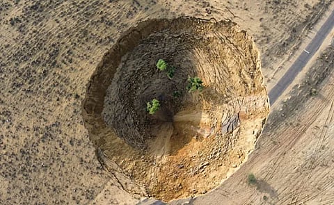 पानी के अति दोहन और कम बारिश से बना गड्ढा?