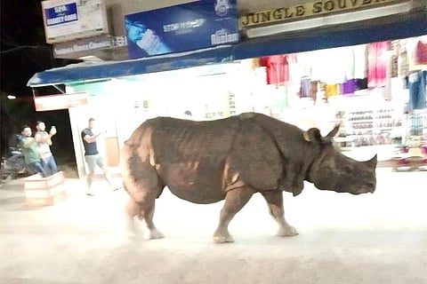 शहर से गुजरते हुए ज्यादातर जंगली गैंडे दुकान या होटल के मेहमानों पर बहुत कम ध्यान देते हैं, अधिकांश को खतरनाक नहीं माना जाता है। स्थानीय लोगों ने बताया कि जब वे आपसे दूर रहना चाहते हैं तो नर शोर मचाते हैं, लेकिन मादा, विशेष रूप से युवाओं के बारे में आप अनुमान नहीं लगा सकते वे किस तरह का व्यवहार करेंगे।