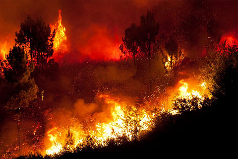 सूखे और आर्द्रता विहीन गर्मी, जलवायु परिवर्तन से पहाड़ों का बढ़ता तापमान और चीड़ के पत्तों से पहाड़ के जंगल धू-धू कर जल रहे हैं। पिछले हफ्ते में थोड़ी बारिश से आग में कुछ कमी जरूर आयी पर फिर से आग उसी विकराल रूप में आ चुका है। तजा स्थिति यह है कि आग पूरब में नेपाल और पश्चिम में हिमाचल सहित जम्मू कश्मीर तक जा पहुंचा है।