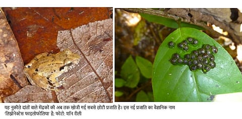 जर्नल प्लोस वन में इन्हीं मेंढकों की एक नई प्रजाति के खोजे जाने का दावा किया गया है जो नुकीले दांतों वाले मेंढकों की अब तक पहचानी गई सबसे छोटी प्रजाति है। इस नई प्रजाति का वैज्ञानिक नाम ‘लिम्नोनेक्टेस फाइलोफोलिया’ है, जहां फाइलोफोलिया शब्द उनके पत्तियों में घोसला बनाने के व्यवहार को संदर्भित करता है।